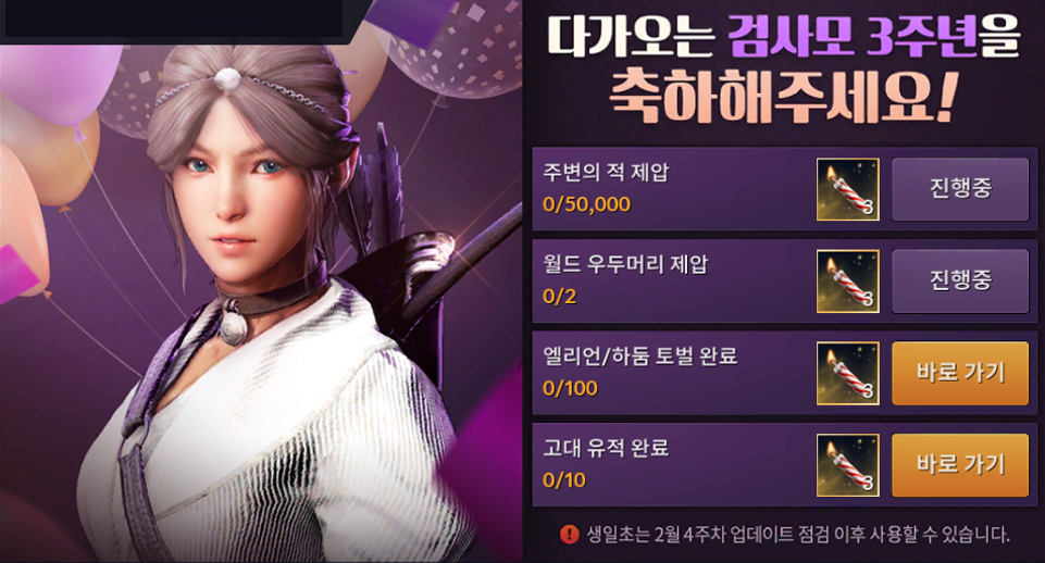 2월 4주차 업데이트 때 시작 될 검은사막m 3주년 기념 이벤트를 위한