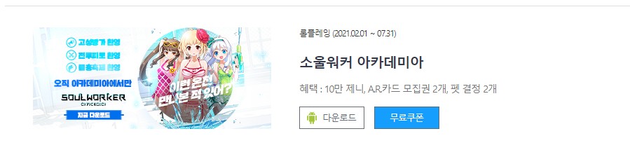 소울워커 아카데미아 쿠폰 을 받을 수 있는데요 !!